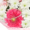 хризантема кустовая белая - 6 шт., гербера розовая - 5 шт., фетр розовый, лента.