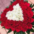 роза белая - 10шт., роза красня - 25шт., красная лента - 1шт., корзина.