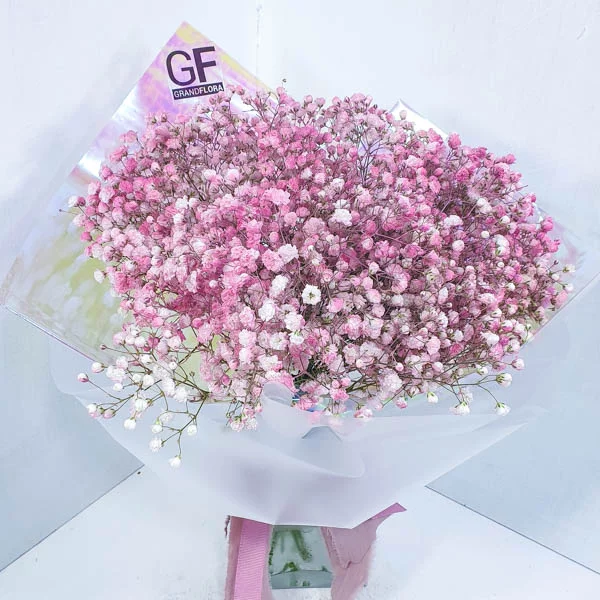Букет "Моменты радости" - это букет, состоящий из розовой гипсофилы. Гипсофила отностися к семейству гвоздичных цветов.  Розовая гипсофила идеально подходит для создания нежного и женственного букета.