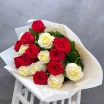 Роза красная и белая 60 см - 17 шт, упаковка, лента. На фото представлен букет из 19 роз.