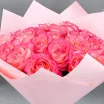 роза розовая -33шт., упаковка, лента.